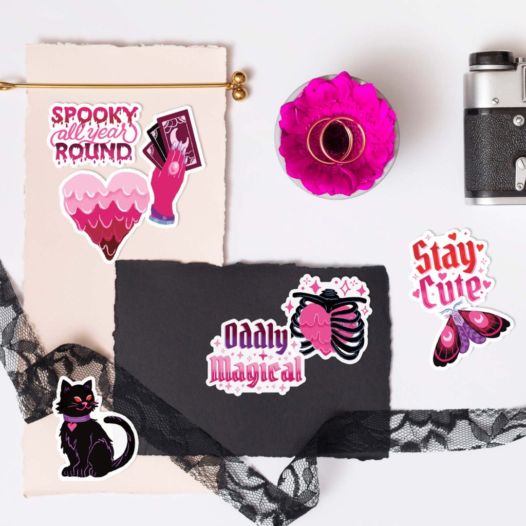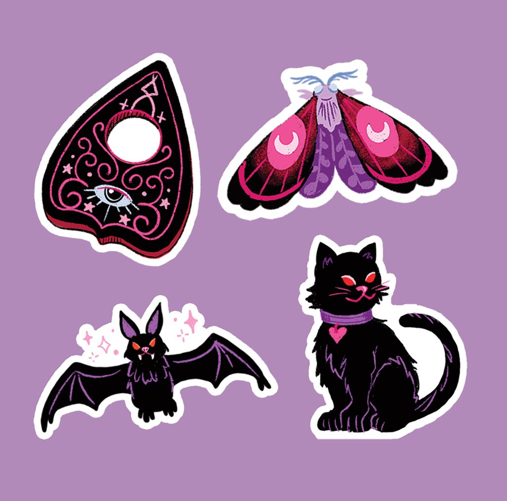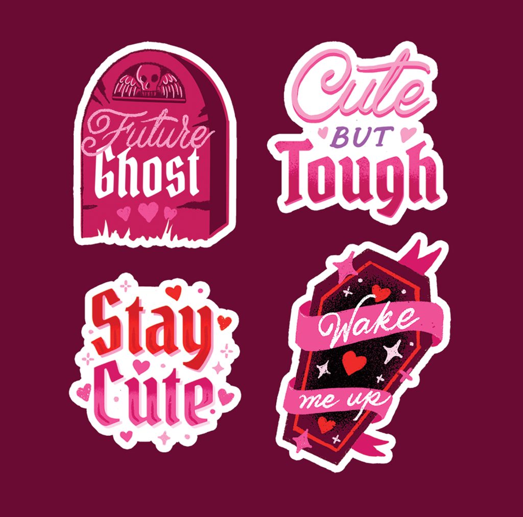 Offering a different take on Halloween-themed items, I illustrated this cute goth set for Navy Peony. One review mentioned it being appropriate for teens and “baby goths,” which was my intention when I created it. A little sweetness goes a long way! These stickers can be purchased here.