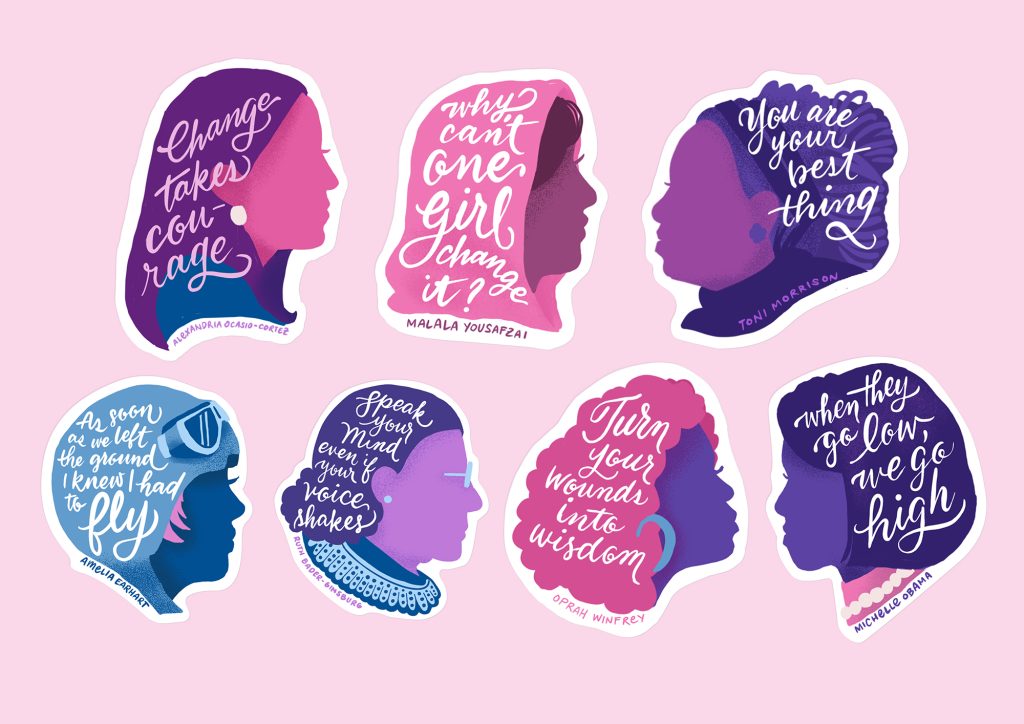 Navy Peony is a woman-owned stationery company, and this inspired me to make this sticker set. The company believes and celebrate women empowerment, and we would like to share this enthusiasm with our customers. I designed it with the pink and purple color palette in mind, and the team collected their favorite quotes by female icons from past to present for me to draw. This set became one of our best sellers, especially during women’s month and Galentines’ day. These stickers can be purchased here.